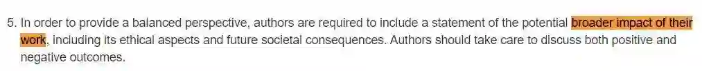在今年正在进行的大会论文提交过程中,除了提前截稿、提前拒稿,让论文作者当审稿人等一系列新操作之外,还有一条就是必须提交「广泛影响声明」: