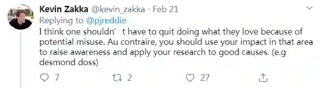 前谷歌大脑机器人研究专家 Kevin Zakka 认为,研究者不应该因为自己的工作可能带来负面影响而停止研究。