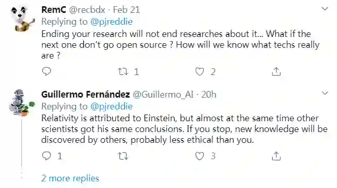 在 Redmon 的推文底下,大家展开了一番讨论。