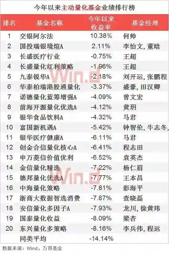 10、主动量化基金业绩榜TOP20