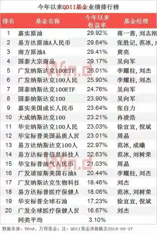 07、QDII基金业绩榜TOP20