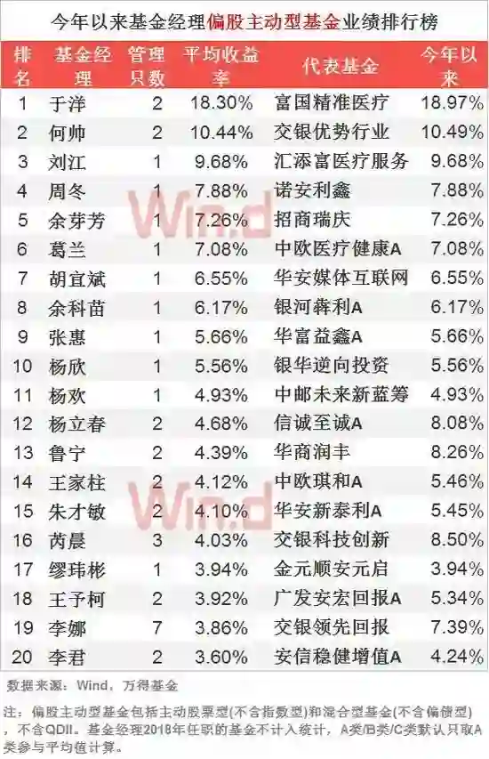 15、偏股主动型基金经理业绩TOP20