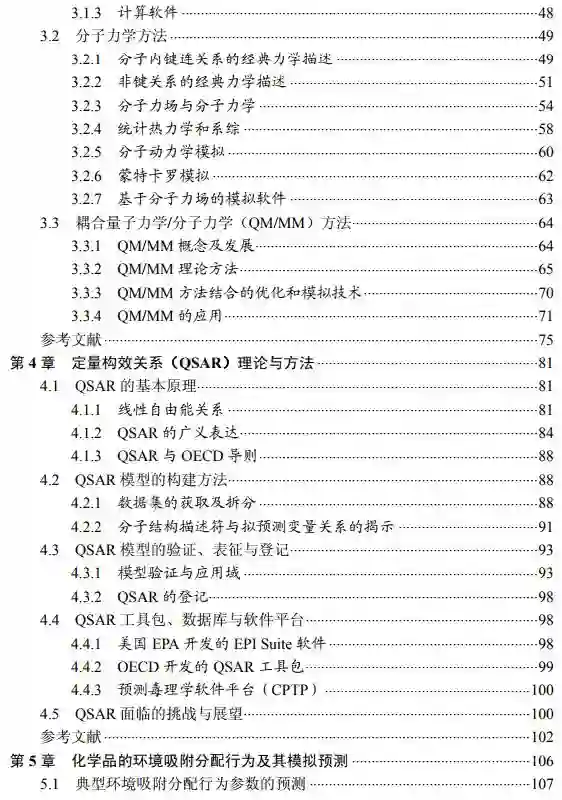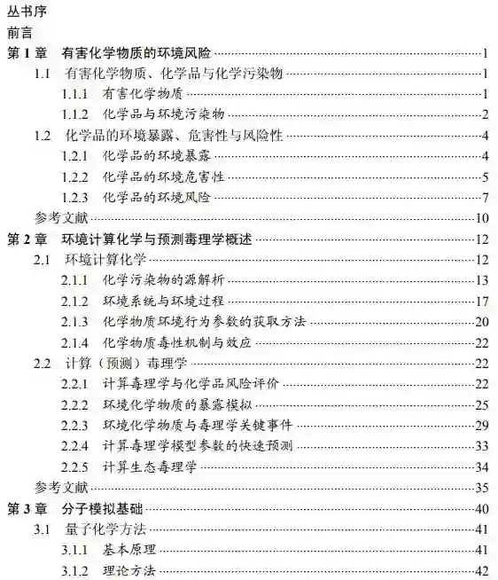 环境计算化学与毒理学是面向化学品风险预测与管理需求的新兴研究领域。本书介绍有害化学物质、化学品、化学污染物及环境暴露、危害与风险的基础概念,讨论学科的发展背景、内涵与外延,阐述分子模拟以及环境科学中定量构效关系(QSAR)的原理和方法;结合作者的研究工作,介绍基于分子模拟而预测有机物环境行为和代谢转化的方法案例、有机物环境行为与毒理效应参数的 QSAR 模型。本书可供环境科学与工程专业以及从事化学品风险评价的研究生和科研工作者参考。