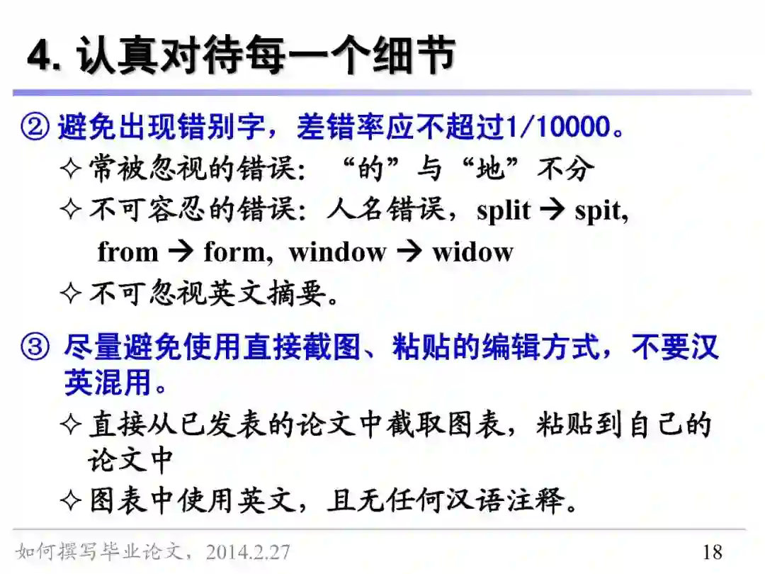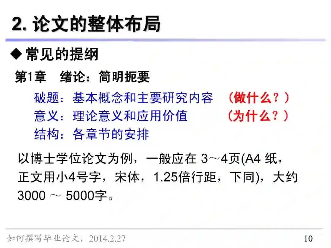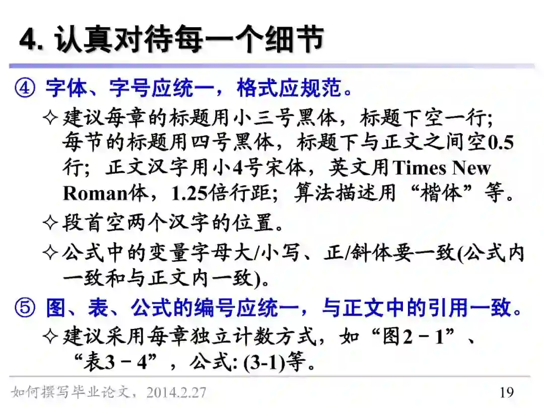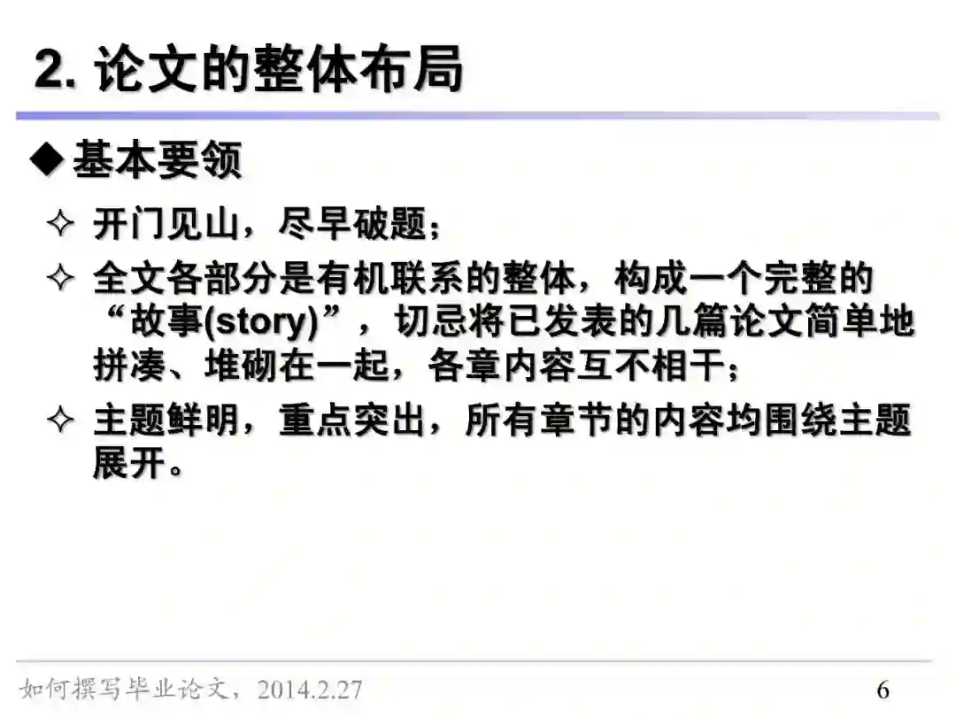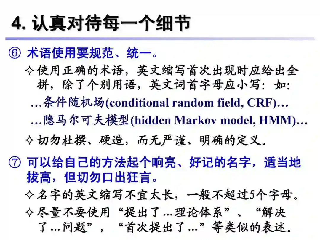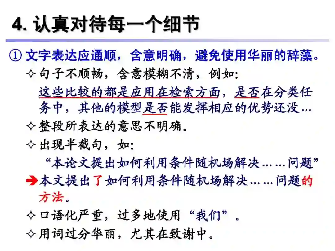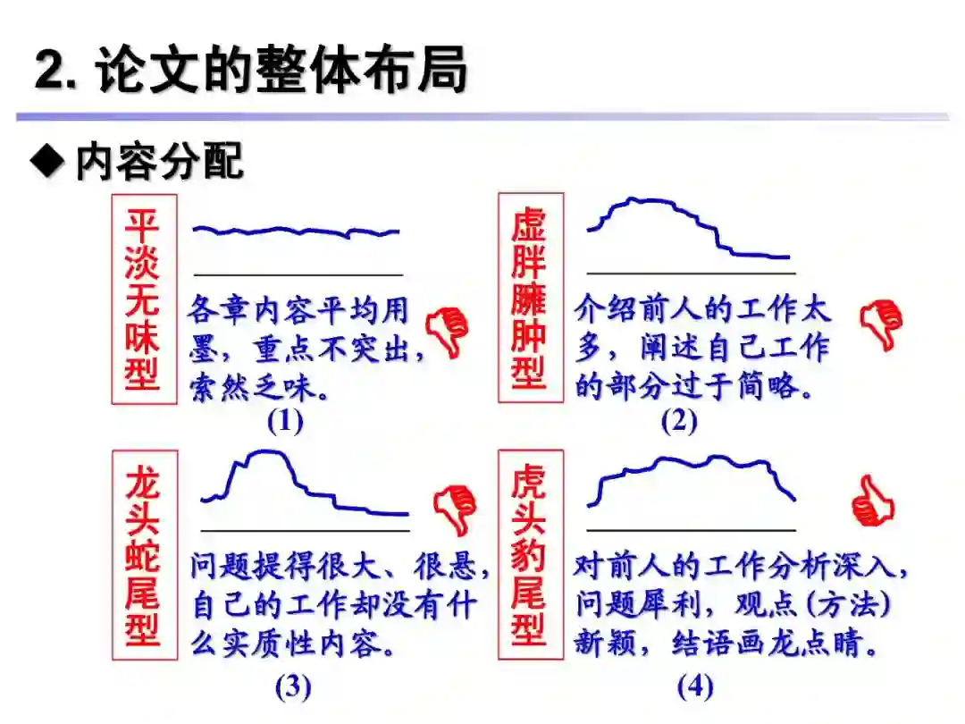 论文的结构是否清晰、逻辑是否清楚、表述是否流 畅、准确,具有非常重要的意义 我们提倡规范、严谨、朴实的写作风格,“标新立 异”应体现在创新思想上,而不是在写作形式上