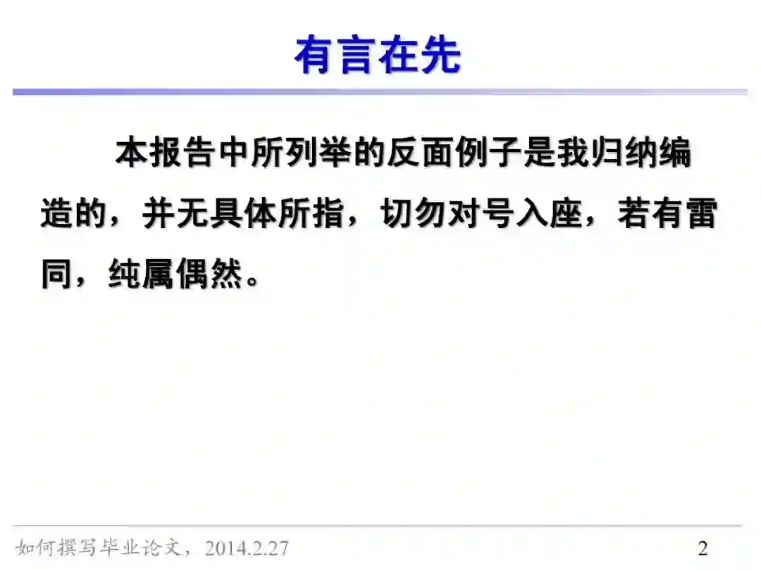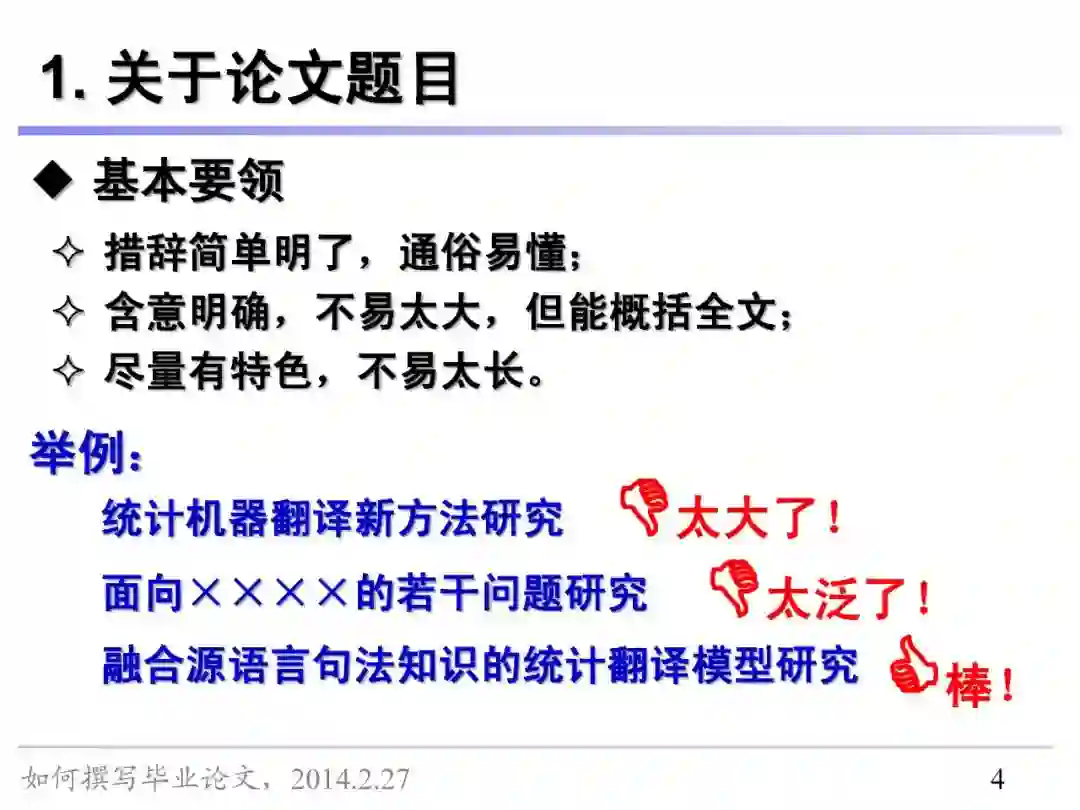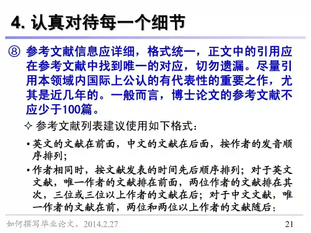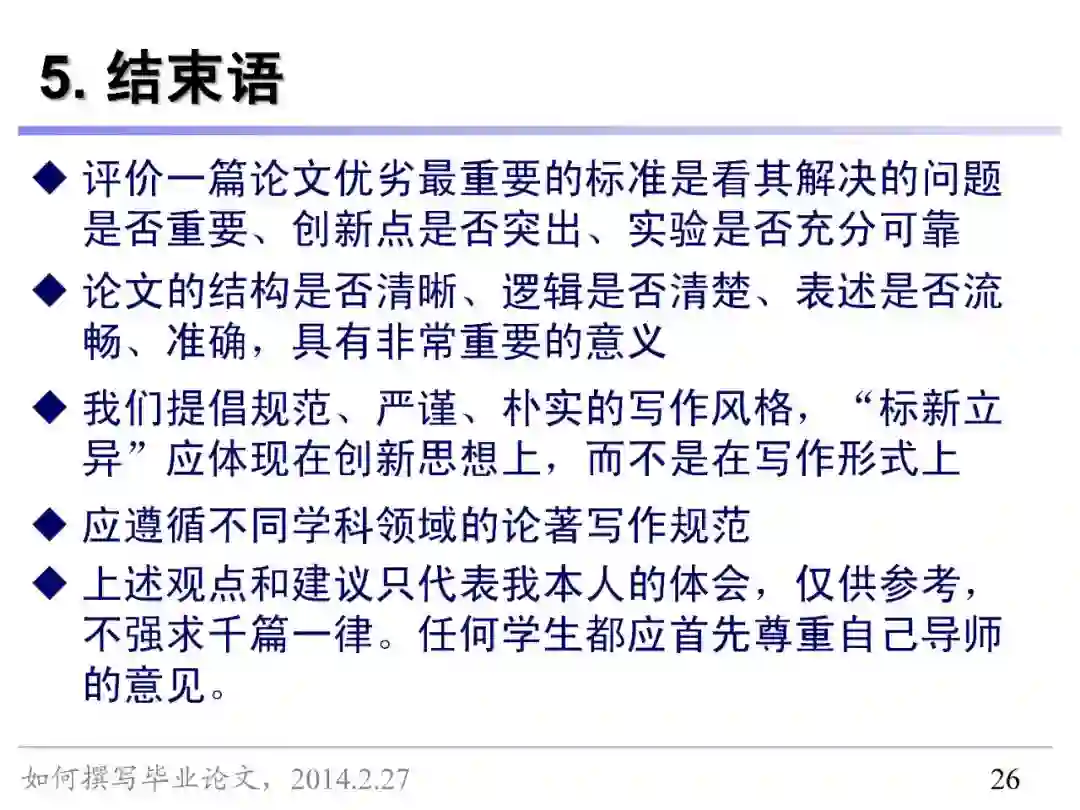 上述观点和建议只代表我本人的体会,仅供参考, 不强求千篇一律。任何学生都应首先尊重自己导师 的意见。