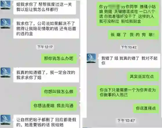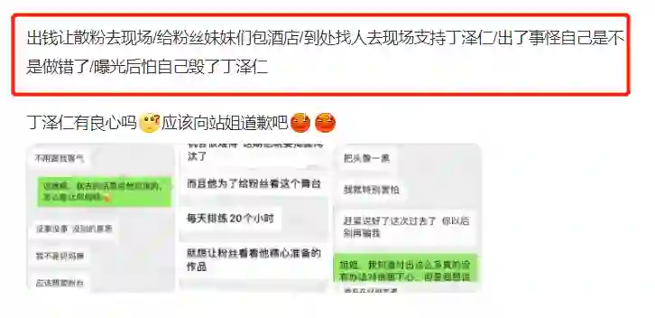国内的爱豆特别是糊豆们,则往往打感情牌,靠卖惨吊住站姐,比如丁泽仁和“他唯一的姐”。A子就听说过,有站姐与爱豆交换联系方式后,小糊豆一会说姐姐我想去学跳舞,但公司不同意;一会说在内娱做爱豆死路一条,想去上培训班提升演技。但终极目的就是一个——要钱。