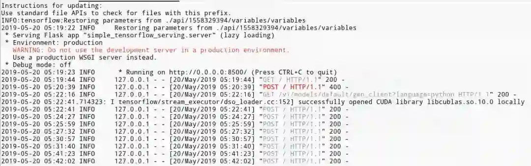 client.sh、client.py、file_base_client.py 处理输入数据并向部署的TF serving的模型发出请求,打印输出结果