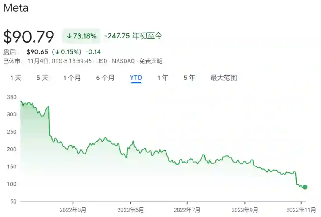 Meta 的裁员似乎在预料之中。从年初至今,Meta 的股价像坐了过山车一样,大跌了 73%以上。尤其是在元宇宙领域的巨大投入受到了大量怀疑、诟病,近期更看不到收益。
