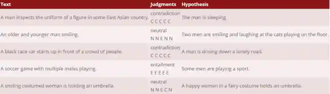 图1:SNLI (Stanford NLI)数据样例