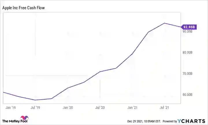 仅在2021年,苹果公司便产生了930亿美元的自由现金流,加上220亿美元的研发预算,最终每年有1260亿美元可以投资到其各种业务中,包括通过收购。
