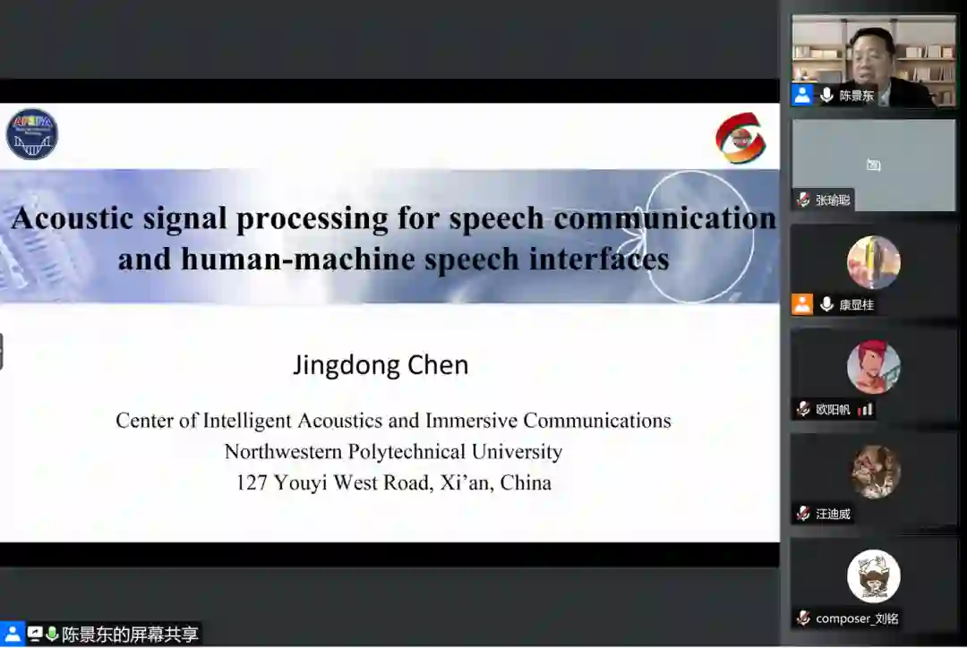 陈景东教授的报告题目为“Acoustic signal processing for speech communication and human-machine speech interfaces”。在报告中,陈景东教授和大家分享一下声信号感知与处理的一般过程以及所要解决的主要问题,然后讨论MIMO(multiple-input and multiple-output,多输入和多输出)声学系统中声信号感知、获取、处理、传输与重构所面临的主要挑战。