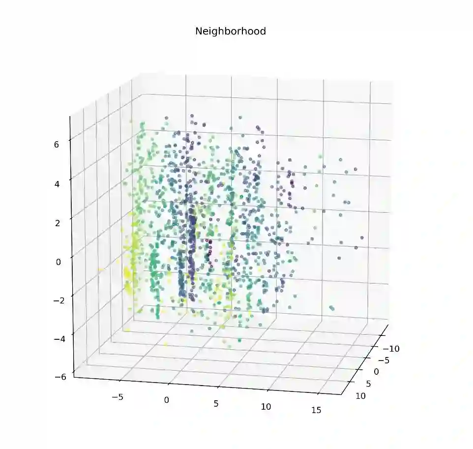 由PCA 、聚类方法生成的群集非常好地区别了分组中的垂直“条纹”。为了找到无监督聚类和其所对应的房屋特征之间的相似点,这些群集也基于每个分类变量着色。其中一些彩色的散点图类似于无监督聚类,表明这些特定的房子特征在确定每个数据点的最终PCA向量时起较大的作用。特别注意的是,基于邻近区域(neighborhood)着色突出了与无监督方法相似的垂直分组,这表明邻近区域是影响分解子集的一个重要因素。为了此类应用,我们需要设计更精确的方法来确定每个因素对最终PCA维度的整体“贡献”。