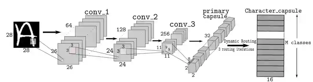 我们提出了一种由胶囊网络和解码器网络组成且针对字符识别任务的架构,如图 1 和图 2 所示。
