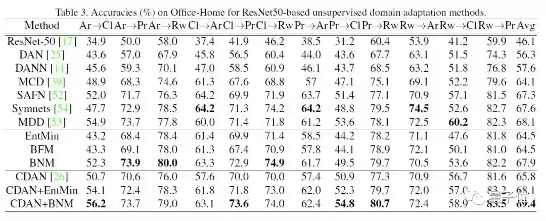 所以类别预测的判别性与多样性同时指向矩阵的核范数,我们可以最大化矩阵核范数(BNM)来提升预测的性能。