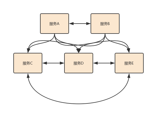 单体系统让很多人诟病的是其服务内聚混乱,看起来就像一个大泥球。那么,服务化之后,就解决了这个问题了吗?事实上,微服务通过拆分单体系统使其成为多个体积更小的服务来降低单个服务的复杂性,让单个系统看起来更加的职能清晰,但是,整个系统架构变得更加复杂。事实上,生产环境的多服务之间的调用可能如图所示的场景。