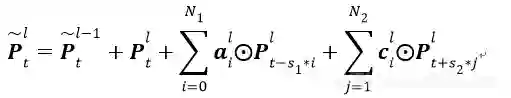 我们对记忆模块的表达也进行了一些修改,通过借鉴扩张(dilation)卷积[6]的思路,在记忆模块中引入一些步幅(stride)因子,具体的计算公式如下: