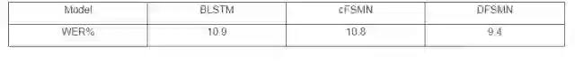 进一步的在cFSMN的基础上,我们提出的DFSMN,可以更加显著的提升模型的性能。