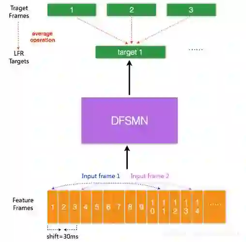 最近有研究提出一种低帧率(Low Frame Rate,LFR)[7]建模方案:通过将相邻时刻的语音帧进行绑定作为输入,去预测这些语音帧的目标输出得到的一个平均输出目标。