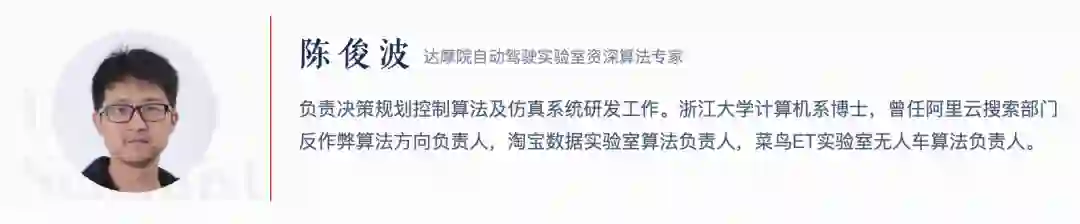 陈俊波也是阿里巴巴自动驾驶的「老人」,负责决策规划控制算法及仿真系统研发工作,他曾担任菜鸟 ET 实验室无人车算法负责人。