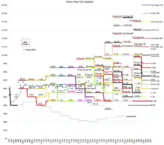 由于蒂姆库克对苹果用户的热爱、他对新研发的重视以及他的管理风格,AAPL 享有巨大的经济优势,而且护城河只会变得更加持久。下面的图表提供了一个可能性。它以 iPhone 为例来展示 AAPL 的定价能力。这是一个繁忙的图表,包含一些快速的信息。关键要点是: