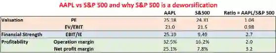 评估其相对估值,以说明为什么他集中押注 AAPL 实际上比拥有整个市场的风险要小。