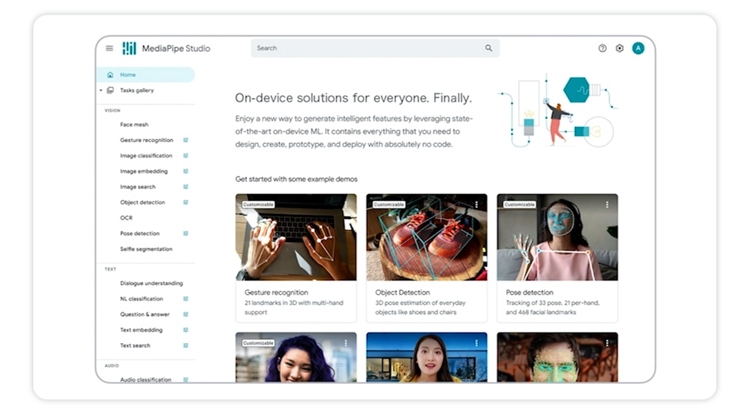 MediaPipe 也与开发者们正式见面,开发者们能够通过 MediaPipe Tasks 和 MediaPipe Model Maker 的低代码库自行创建设备端机器学习解决方案,更灵活地使用机器学习技术,将更多创意轻松落地为产品。