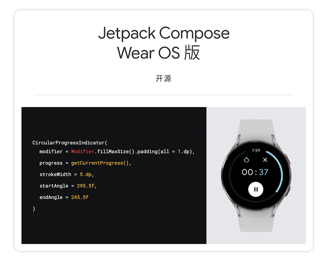 Android 也发布了 Jetpack Compose for Wear OS,帮助开发者们将过去的开发经验应用于构建手表屏幕的体验,构建更精美的可穿戴设备应用。