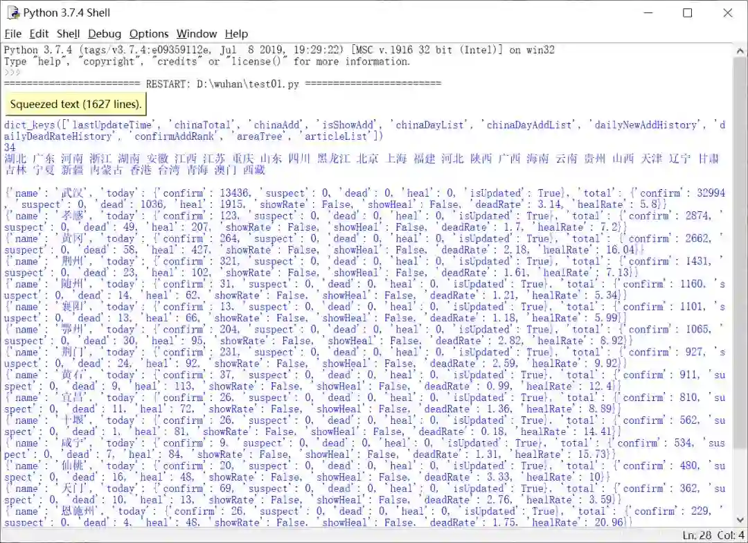 28# 解析数据(确诊 疑似 死亡 治愈)
