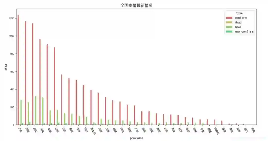 第一篇文章将分享腾讯疫情实时数据抓取,获取全国各地和贵州省各地区的实时数据,并将数据存储至本地,最后调用Maplotlib和Seaborn绘制中国各地区、贵州省各城市、新增人数的图形。希望这篇可视化分析文章对您有所帮助,也非常感谢参考文献中老师的分享,一起加油,战胜疫情!如果您有想学习的知识或建议,可以给作者留言~