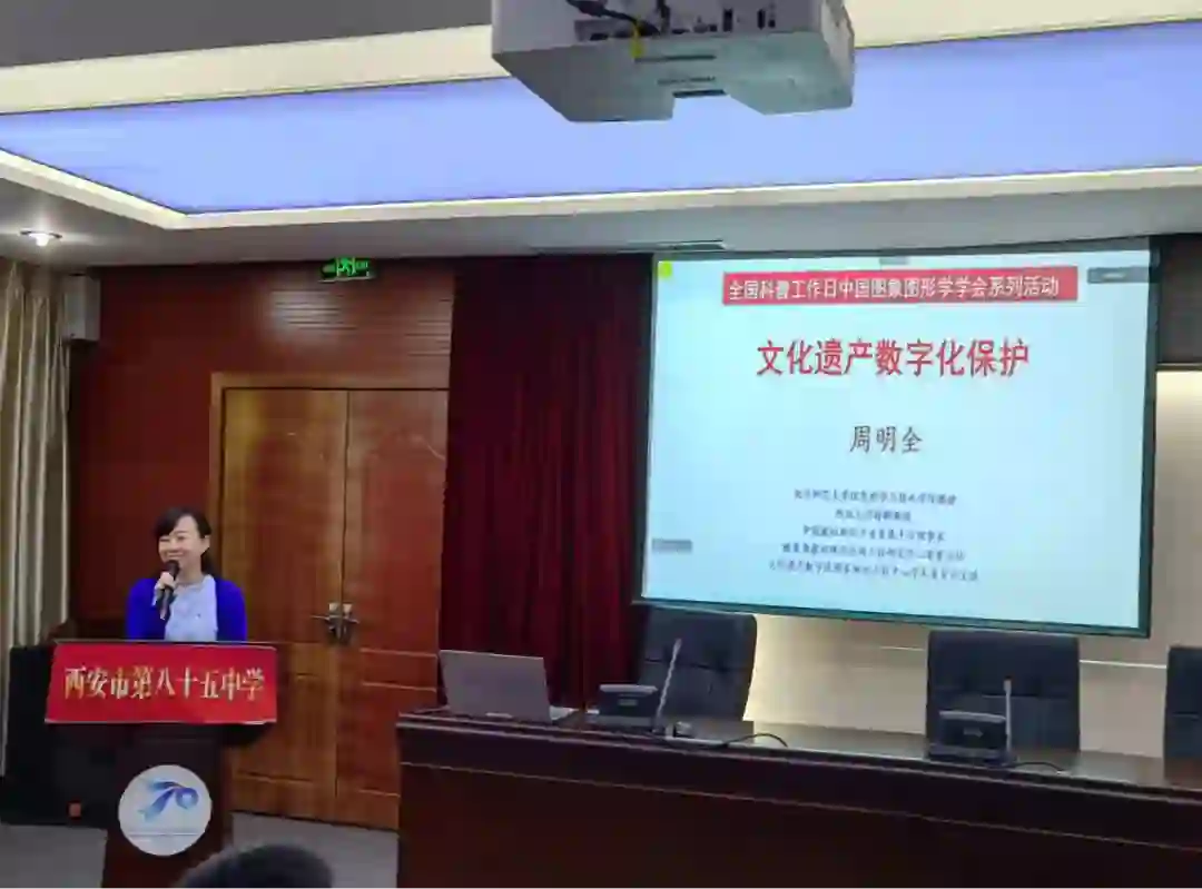 在2022年全国科普日之际,中国图象图形学学会数字文化遗产专委会联合西北大学、文化遗产数字化国家地方联合工程研究中心、西安市第八十五中学举办“趣谈文物数字化技术”科普活动。