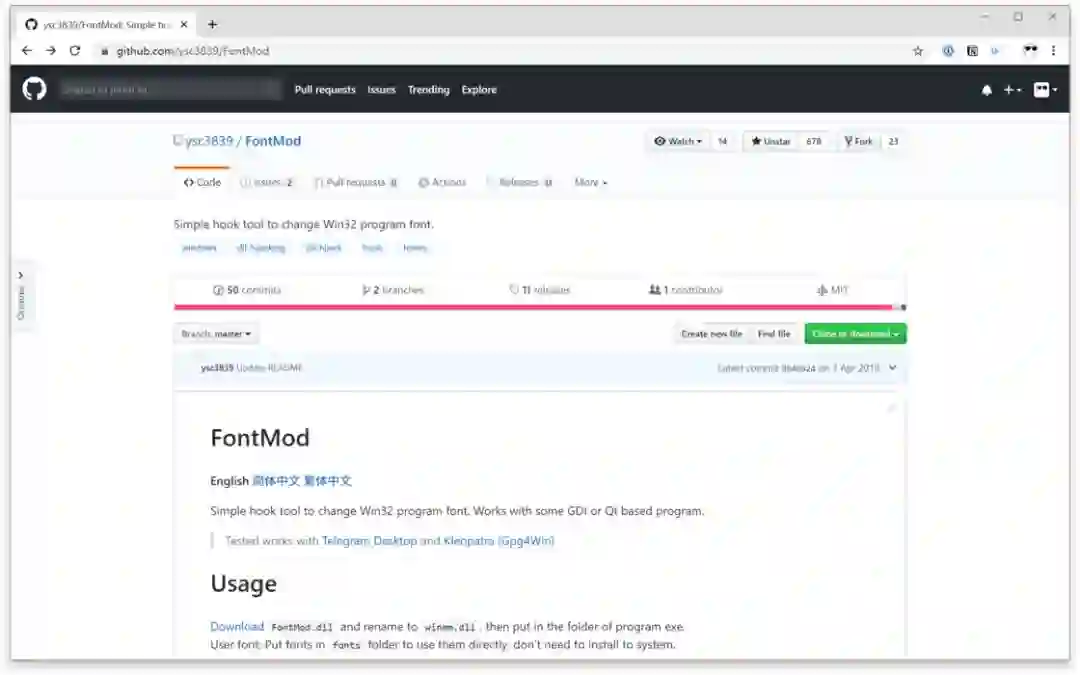 FontMod 是一款开源的「字体外挂软件」,通过 DLL 注入的方法将应用程序的字体渲染部分强行修改为我们希望的字体 —— 比如将「中易宋体」替换为「微软雅黑」。经过测试,FontMod 能够有效修改使用 GDI 渲染引擎的 Win32 应用程序,以及一些基于 Qt 的应用程序。比如,我就使用 FontMod 成功修改了 Mendeley Desktop 的字体。接下来我们就具体介绍一下怎样使用 FontMod 来修改应用程序的字体。