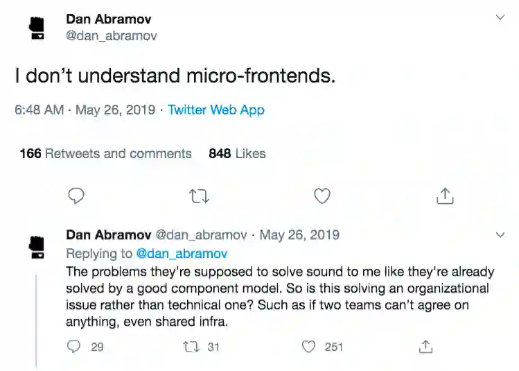 这个架构释放了构建微前端的巨大潜力。你可以在如下文章中阅读更多信息和查看示例。