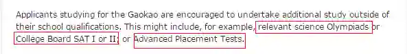 此外,剑桥大学还鼓励有志报考的中国学生,多参加科学奥林匹克竞赛,或者SAT I/II或者美国大学预修课程考试(Advanced Placement Tests)考试。