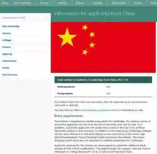 作为这样的一所名校,以前无论如何是不会承认中国的高考成绩的。中国的学生再优秀,想要上剑桥大学,必须接受他的游戏规划,也就是接受A-level成绩:A*AA或接受IB成绩:40-42 points,with 776 at Higher Level,符合这两个条件中任何一个可以报考。当然,报考还不一定通过。