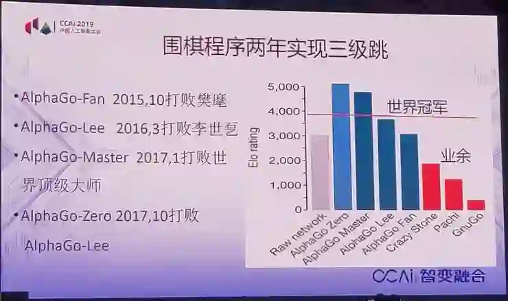 最后一个,给大家印象最深就是AlphaGo,大家都知道了。因此就有很多估计,十年之内代替40%以上人类的工作,三五年里面,智能驾驶车就可以量产,等等,刚刚李院士说到了这个问题,他分析得很深刻。实际三五年里面不可能量产。