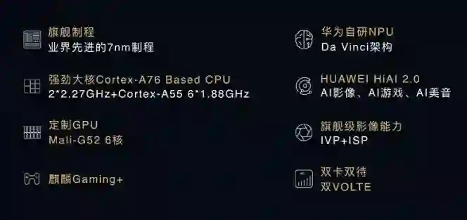 6月21日,华为在湖北武汉的发布会上推出了新款手机芯片麒麟810,总体来看,核心亮点包括:台积电7nm制程工艺,华为自研达芬奇架构NPU,旗舰版A76大核CPU,定制GPU,旗舰版IVP和ISP。