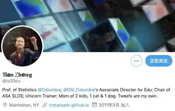 郑甜教授是清华大学94级校友,目前在哥伦比亚大学担任统计系系主任。从郑甜老师的Twitter中不难看出,她对统计学可以说是十分热爱了。