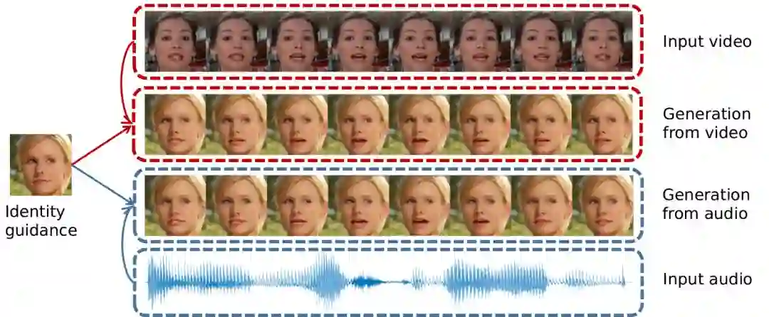 本文旨在生成与音频完美契合,同时对人脸的细节特征保存完好的高质量的说话视频。因为在方法中同时编码了视频和音频信息,从而使一个单独的模型获得了既可以使用音频又可以使用视频进行进行说话人视频生成的特性。