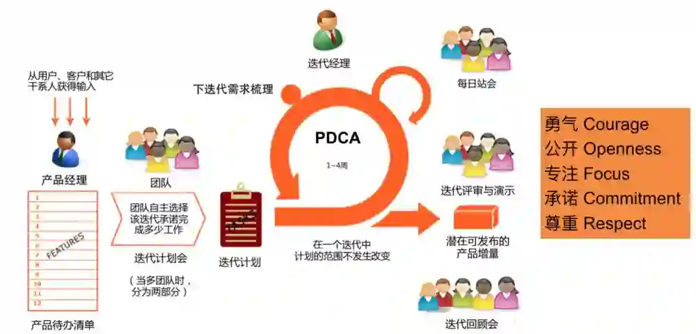 为了让Scrum团队能够高效运作,大家需要对目标承诺,有专注精神、接受挑战的勇气和开诚布公的心态。在分享的同时互相帮助、互相尊重。