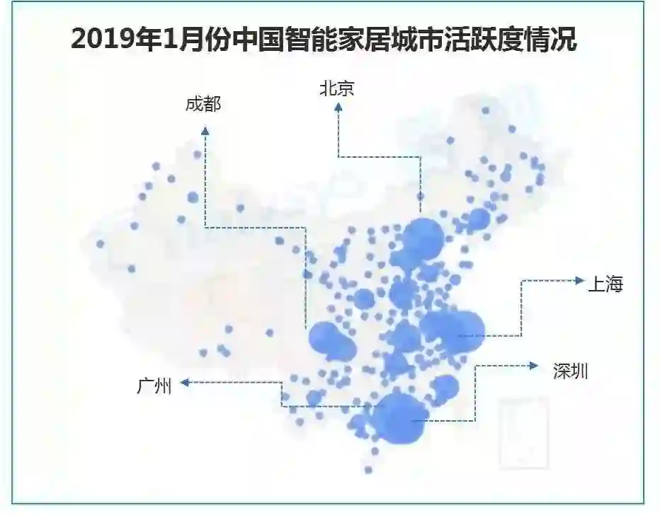 除广州、上海、北京和深圳外,成都、武汉、南京、杭州和福州也是智能家居TOP活跃城市。