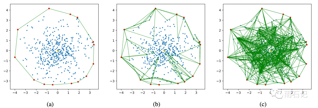 因而,这个时候,我们在变换后的数据上加入原点,然后构建好l2-Delaunay后,那么原点的所有neighbors就是ip-Delaunay上的点,它们是同构的。