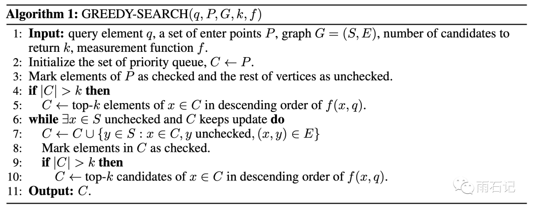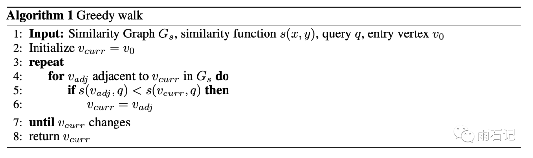算法的大体含义是对于每个query,从随机的一个点开始找,如果相邻的点的距离更小,那么就移到距离最小的相邻点继续找,直到相邻点的距离都比当前点大。