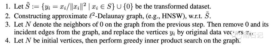 需要注意的是,在使用变换后的数据构建了l2-Delaunay图后,保持这个结构,记录下来原点的所有邻居节点集合N,然后移除原点,再用对应的原数据替换这些变换后的数据点。而在搜索的时候,就从集合N出发,用一种类似beam search的算法去进行BFS。