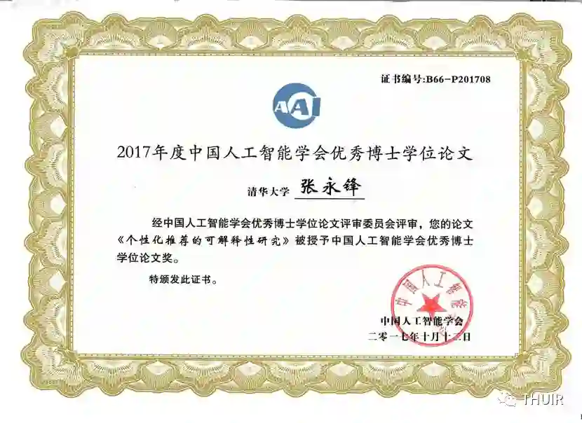 7月15日,张永锋同学获得2017年度中国人工智能学会优秀博士学位论文。