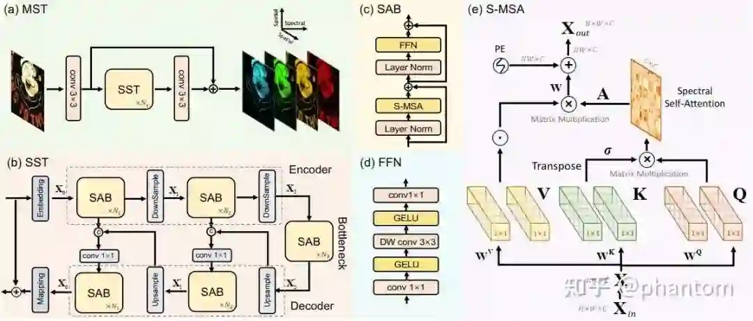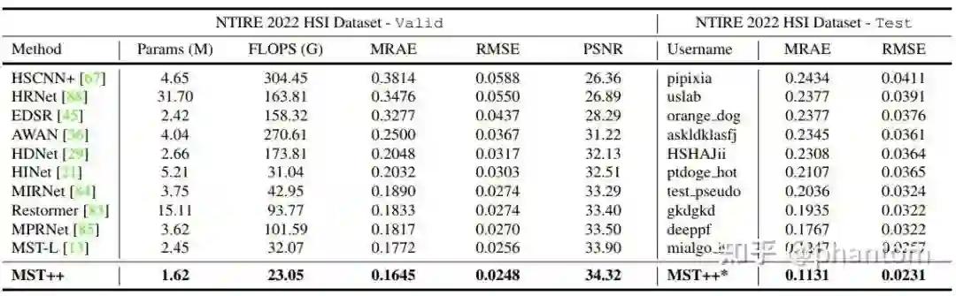 我们的两个工作 MST 与 MST++ 就分别针对 SCI-to-HSI 与 RGB-to-HSI 设计了历史上第一个用于高光谱图像重建的 Transformer。