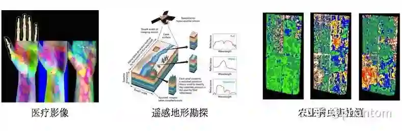 这么说可能不太好理解,举个例子,比如在深夜,如果直接看 RGB 图像的话,可能是一片漆黑,但是如果通过红外夜视仪的话,就能很清晰看到发热的活物。这个红外夜视仪捕获的就是红外光谱图像。也正因为光谱图像有着这样的特性,它被广泛地应用于目标检测与追踪,图像识别,遥感,医疗影像等领域。