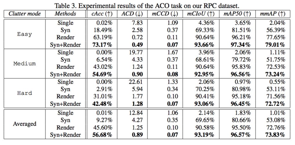 旷视在本文提出了 4 个 ACO 基线方法,分别是 1)Single,2)Syn,3)Render 和 4)Syn+Render。