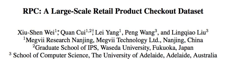 近期,旷视科技南京研究院发布学术界内目前最大的商品识别数据集——RPC,其图像数量和类别数量皆是该领域之最。同时,该数据集针对新零售场景定义了一个新问题,即视觉自动收银(automatic check-out, ACO),模拟零售真实结算场景。此外,还针对 ACO 任务给出了一套完整的 Baseline Method,以及“整单准确率”cAcc为代表的一系列评测指标,更有可以直接安装的 Python 版本评测工具。同名 GitHub 项目主页上有 Leaderboard,欢迎大家来刷榜!