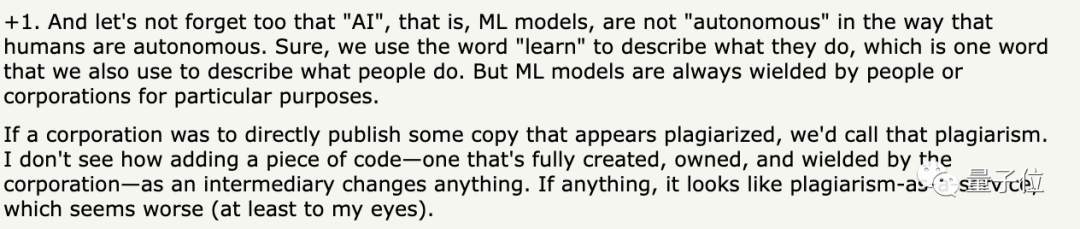 但另一方面,不只现在,其实从Copilot刚出来开始,一直就有众多质疑和反对的声音,核心都不外乎马修在前文举证的那两点。(即这个AI的训练和使用)