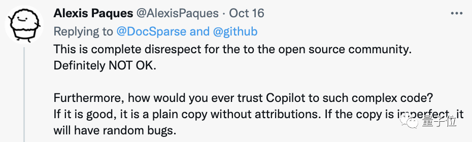 这要是直接采纳可就要涉及许可问题了,可是Copilot根本不会注明这些代码的来源,又该让用户如何遵守协议呢?